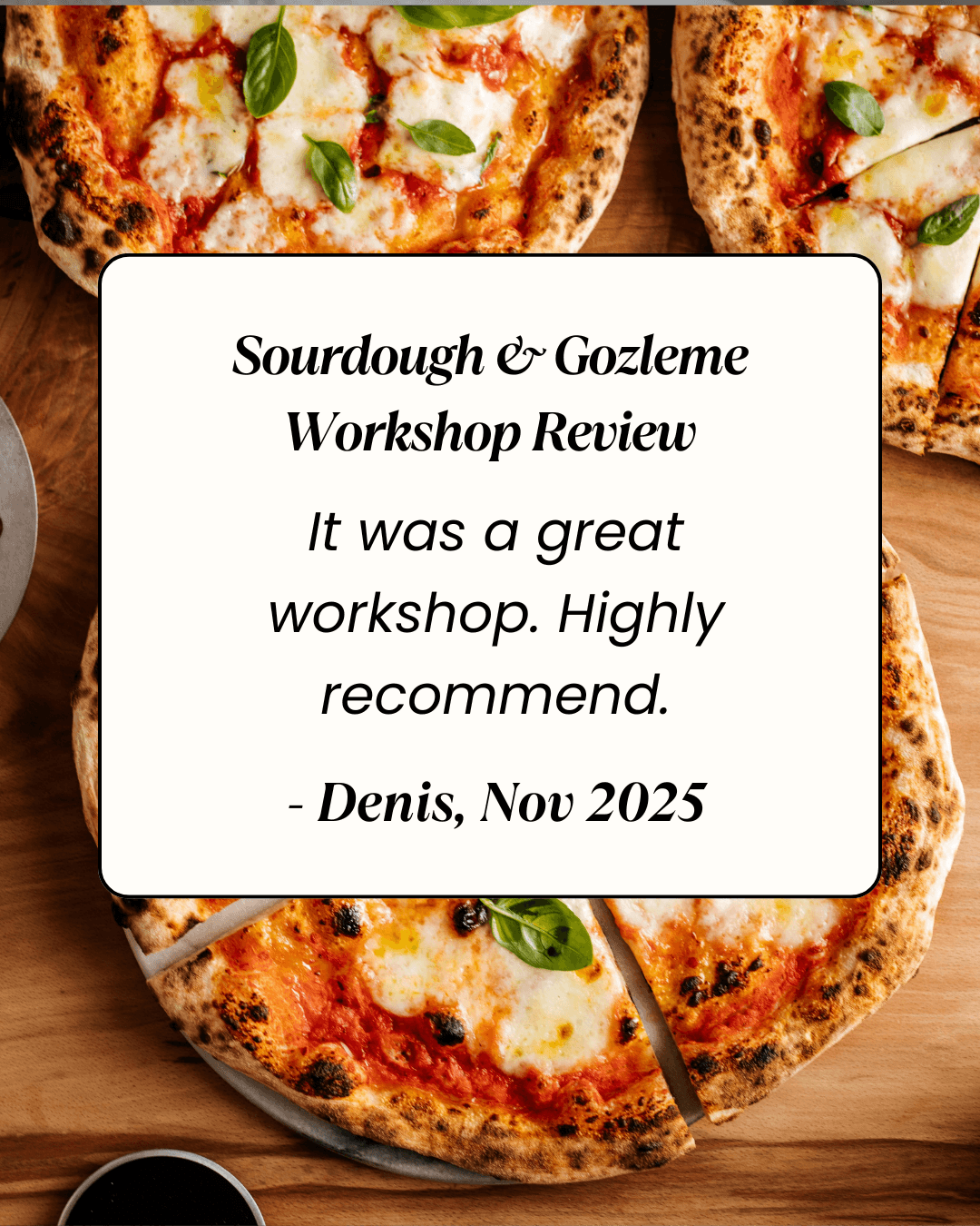 Designed for food enthusiasts of all levels, our workshops provide a welcoming space to explore the art of cooking while enjoying joy, laughter, and shared experiences. Choose from popular sessions, including sourdough workshop, sourdough pizza & flatbreads, dumpling making, and sourdough pasta. Our workshops feature small class sizes to ensure in-depth learning, personalised service, and a supportive environment for every participant.