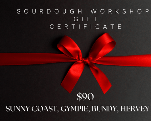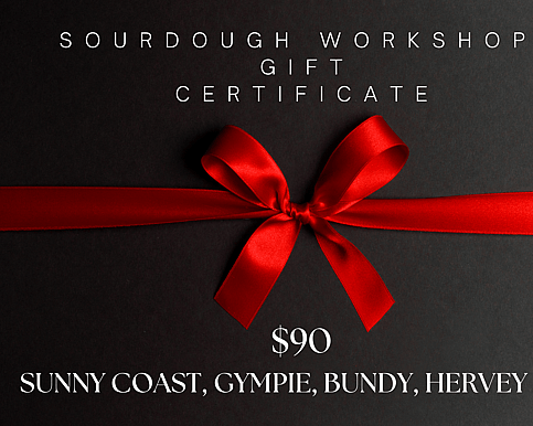 Gift certificates can be used for: 🍞 Sourdough Workshops – Bundaberg, Gympie, Eudlo (Sunshine Coast) & Hervey Bay 🥟 Foodie Workshops in Hervey Bay – including dumplings, fermented foods, sourdough pizza & more