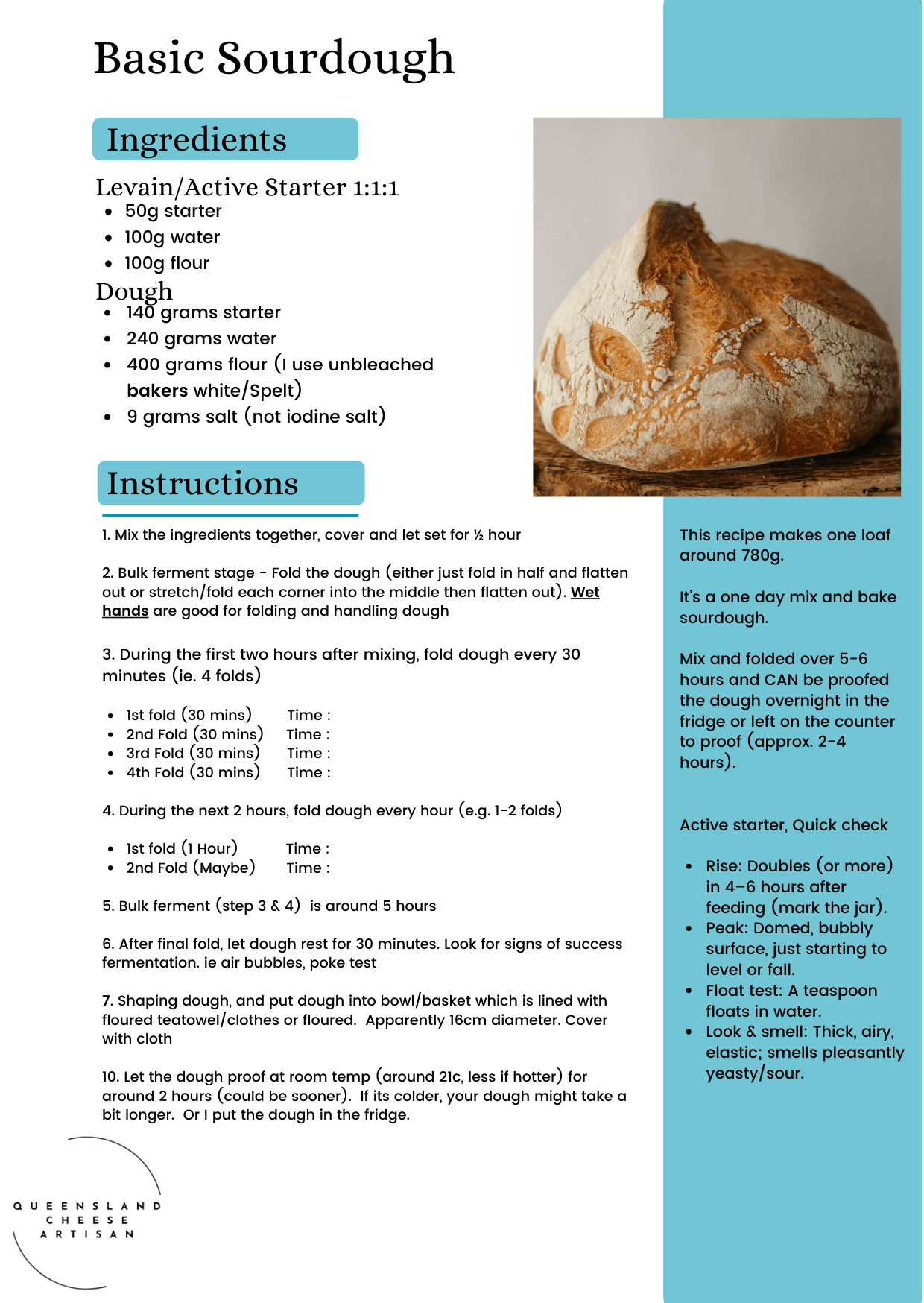 Sourdough timings charts